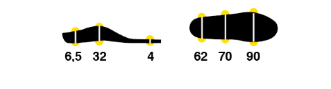 Anatomické vložky usazují patu v patním lůžku a rovnoměrně rozkládají tlak na plosku chodidla. Díky tvarované 3D konstrukci s podporou klenby jsou prevencí vzniku plochonoží a nežádoucí pronace. Povrch je potažen antibakteriální tkaninou.